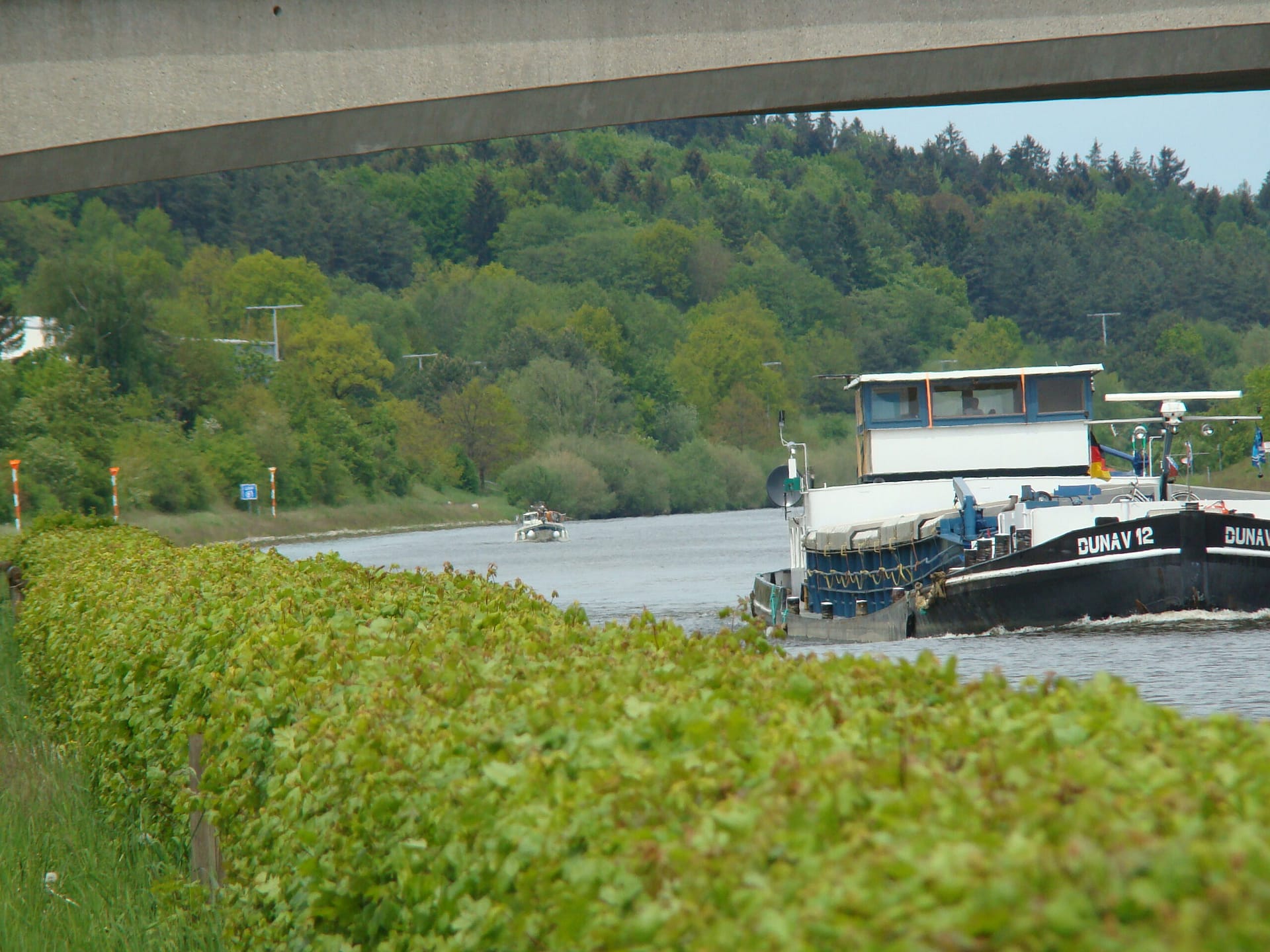 Da ist er wieder, dort oben auf der Brücke! Er macht wieder Fotos! Nein, wir werden nicht verfolgt aber unser guter Freund Gerald erscheint seit einigen Stunden immer wieder plötzlich am Wegesrand, die Kamera gezückt und fröhlich lächelnd. Kuchen hat er auch dabei aber das spontan geplante Treffen gestaltet sich etwas schwierig, denn es gibt fast keine Anlegemöglichkeiten und immer wenn es eine gibt ist Gerald nicht zu sehen. Außerdem versuchen wir auch das letzte Stück noch an dem Frachter vor uns “dran zu bleiben” um auch noch Schleuse Nummer 4 zeitnah zu passieren.